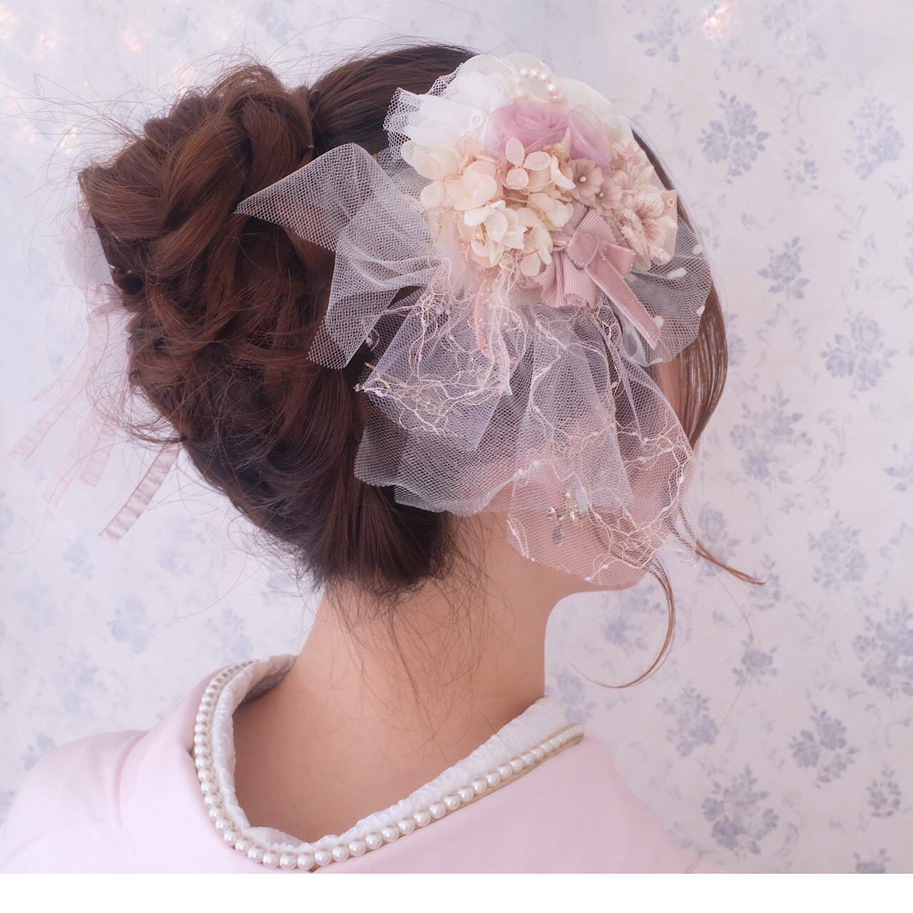 様々な異素材のものを少しづつ組み合わせ、チュールやネットをたっぷり使うことで繊細かつふわふわとしたボリュームの可愛い仕上がりになりました♡